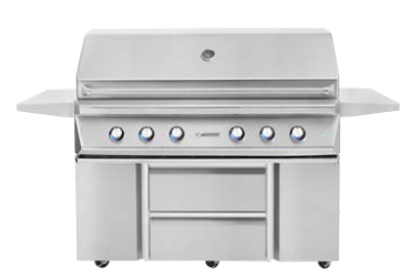 This integrated grill base offers portability and a freestanding optioncompatible with our 54′′ built-in grills. Standard features includesoft-closing doors and self-latching drawers, fold-down side shelveswith tool holders, and heavy-duty casters with front brakes for easymaneuverability and locking. The convenient pullout tray inside holds atrash receptacle or LP tank. Access doors and storage drawers featureflush handle design with high-polished accents.Read More
