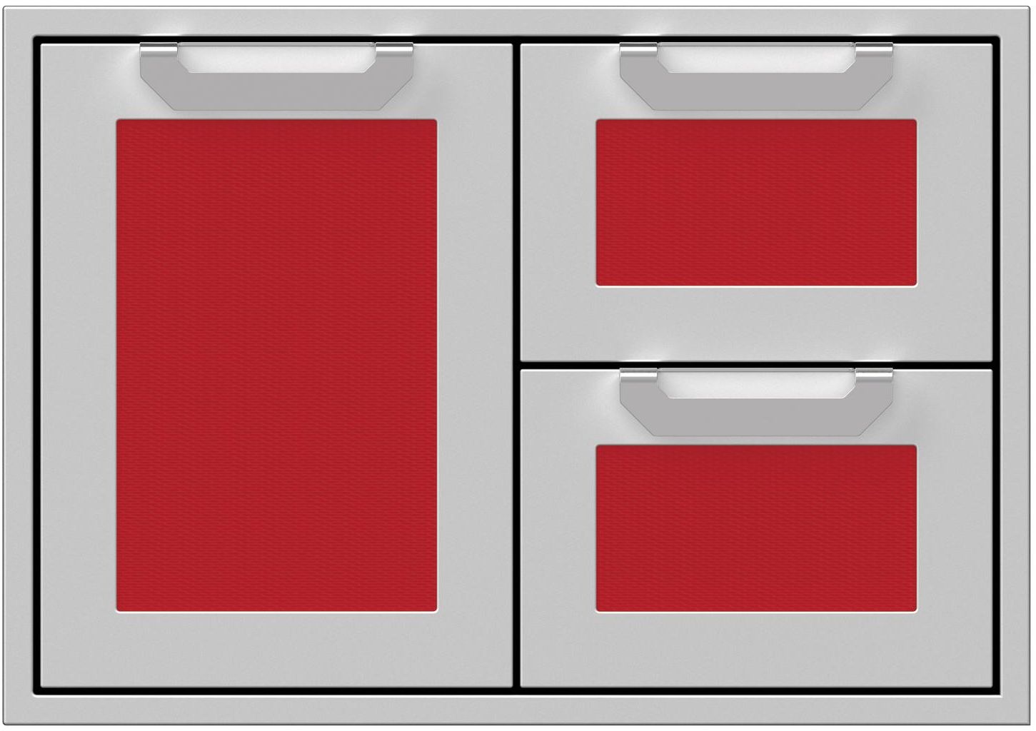 Combo door/drawers deliver highly convenient heavy-duty storage. The commercial-grade handles, recessed Marquise Accented™ panels and heavy-gauge welded body complement Hestan grills in form and function.Read More