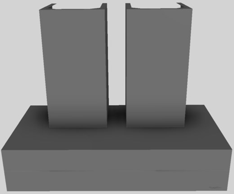 Thick rectangle styling. Click on the models for a list of our base model numbers for standard sizes; simply select the model you need, and then specify the finish (painted or stainless steel). Not available in real brass, real copper, or hammered copper. Recommended mounting height 27" above the cooking surface. Shown with matching wall mount duct covers (sold separately), available in standard sizes for 7', 8', and 9' ceiling heights or in custom sizes. All Vent-A-Hood products are suitable for use in damp locations (outdoor applications such as a covered patio) when installed in a GFCI protected branch circuit.