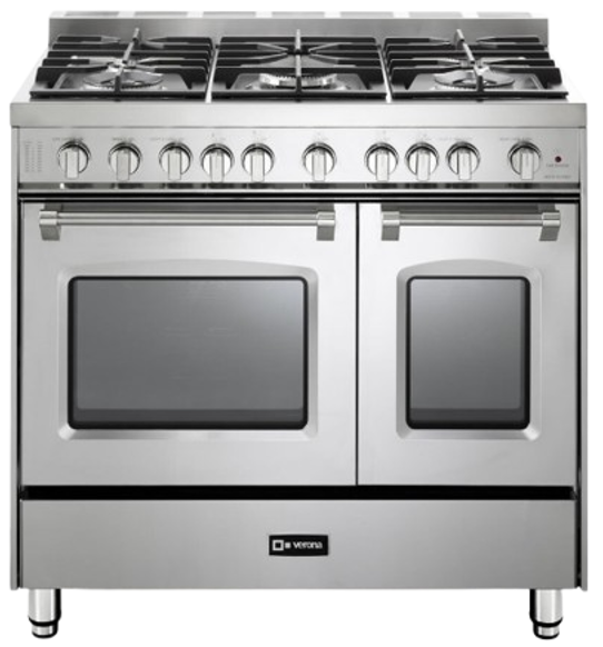 Verona Prestige series 36 inch gas range comes with 5 sealed burners that goes up to 17000 BTU. The range comes with dual ovenswith total oven capacity of 3.9 cu. ft. space to cook a great meal for family dinner. Featuring flame failure safety device that automatically shuts off the gas if the flames goes out, adding extra safety to your kitchen.Read More